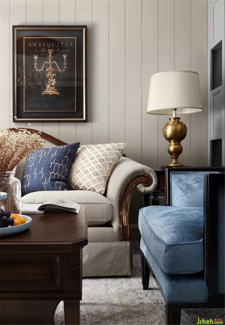 干凈的米色沙發(fā),整體看起來非常溫馨,室內(nèi)設(shè)計(jì)師用乳黃和深藍(lán)色作為跳躍感點(diǎn)綴,溫馨又不失活潑,沉穩(wěn)大氣。