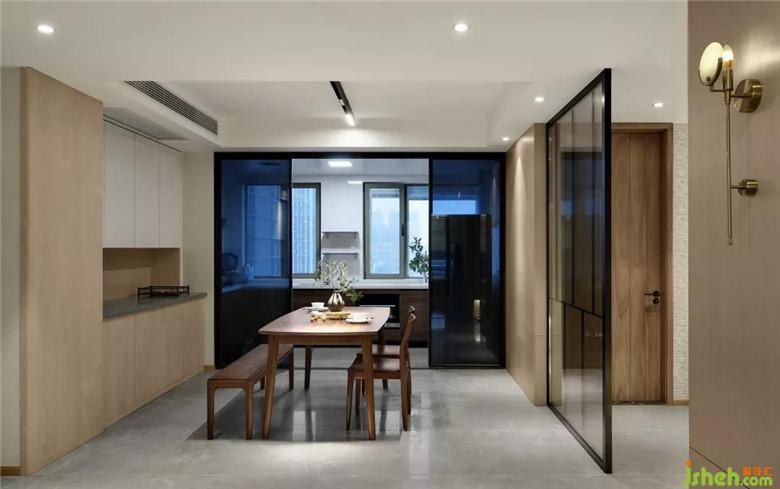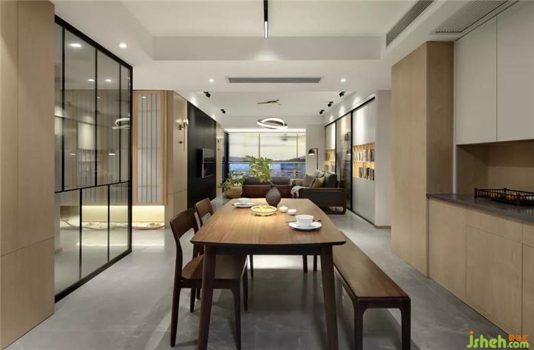 玻璃和木頭元素室內(nèi)設(shè)計師用極簡的線條勾勒出形狀,目之所及的通透與開闊,是第一感覺。