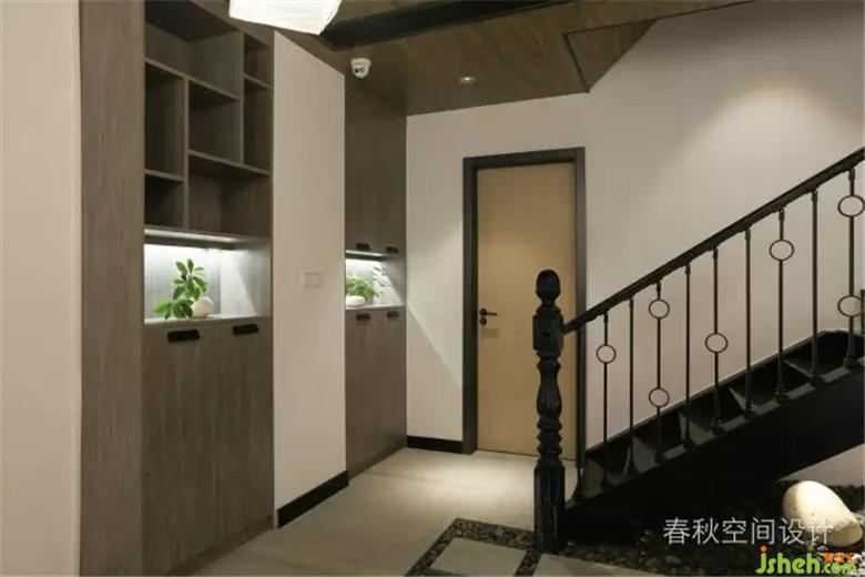 一樓連接至二樓的樓梯走廊,室內設計師在保存中國風古樸美觀的基礎上,體現時尚感和舒適度,穩(wěn)重又不失活潑,寫意又不乏靈秀。