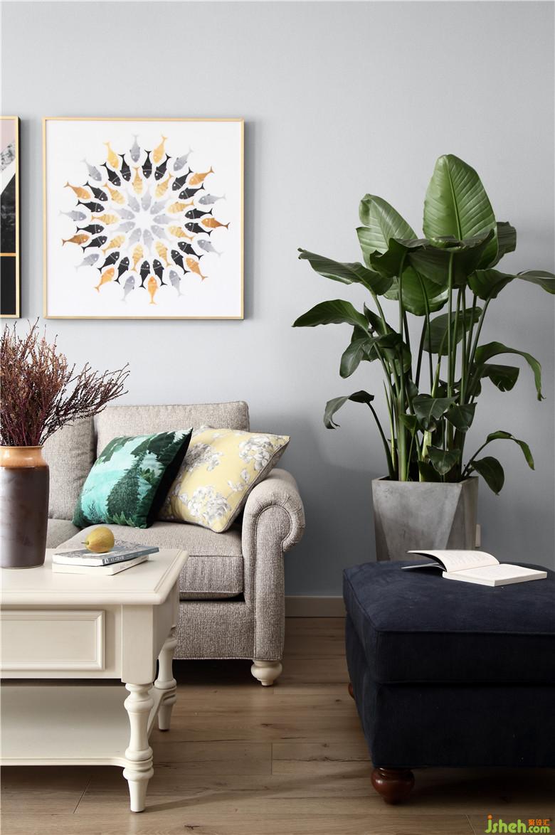 在沙發(fā)上閱讀小憩,簡約的壁畫與綠色盆栽為伴,慵懶卻透著優(yōu)雅精致。