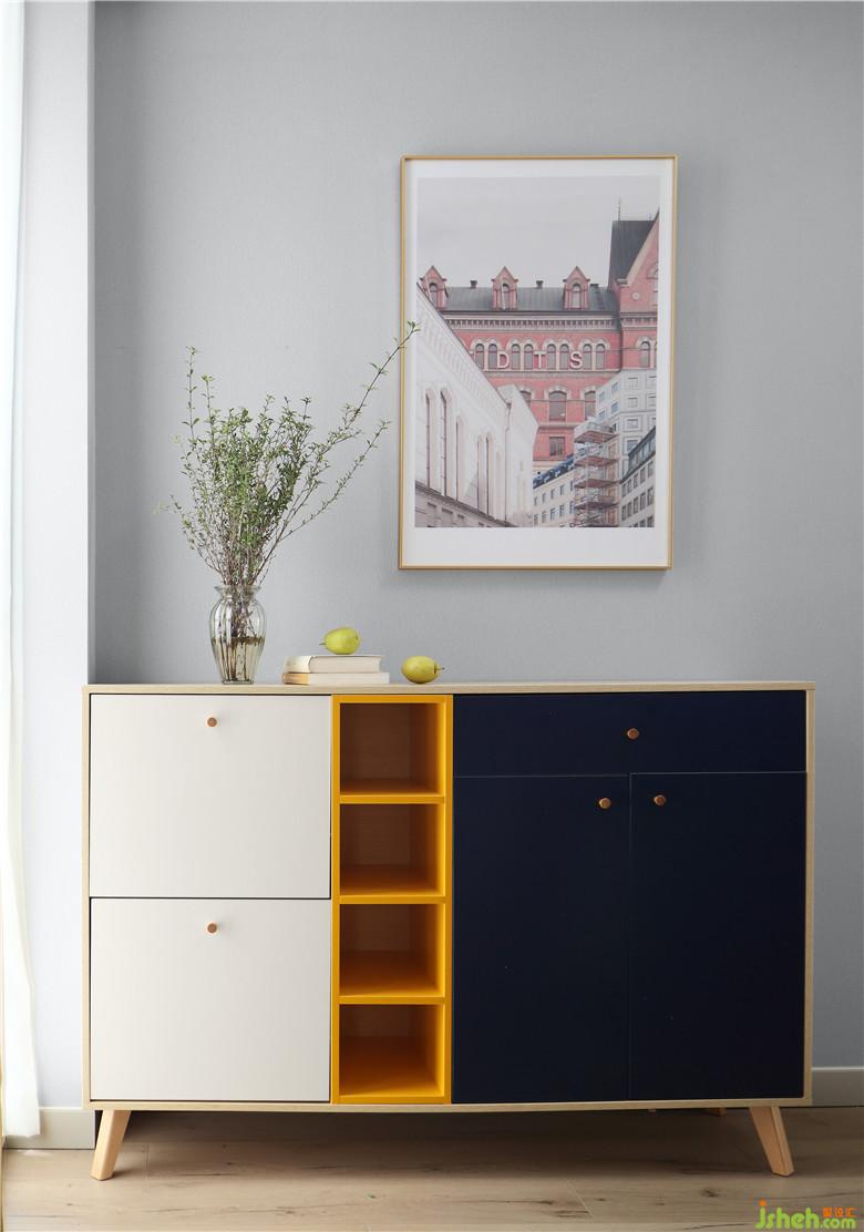 陽光照進(jìn)房間的一角,淺色的墻面被映照出層次。暗色邊柜無疑是門廳最引人注目的存在,室內(nèi)設(shè)計(jì)師以盆栽為點(diǎn)綴,帶來幾分大自然的氣息,裝飾畫則又將你拉回藝術(shù)空間。