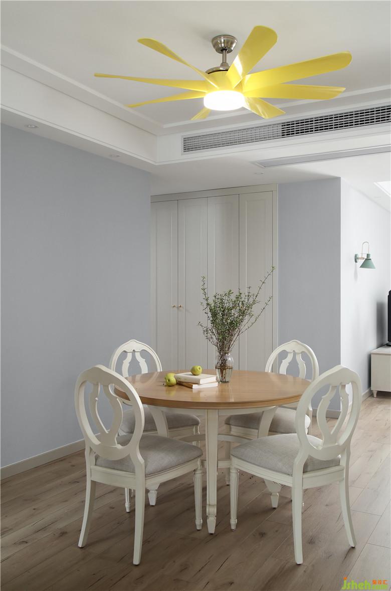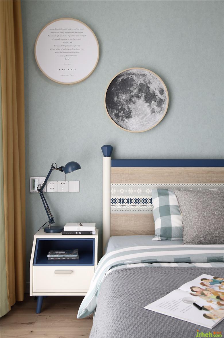 室內(nèi)設(shè)計(jì)師設(shè)計(jì)的灰白帶有星球壁畫的墻面,在點(diǎn)點(diǎn)藍(lán)色家具的映襯下,讓人仿佛徜徉在浩瀚宇宙,充滿了對未知世界的遐思。