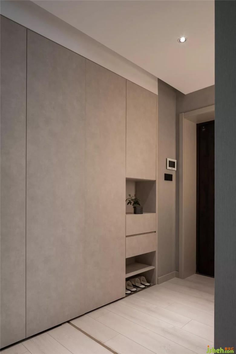 進門的一盞感應燈,“肚量”巨大卻隱蔽的玄關柜,讓回家離家充滿儀式感。
