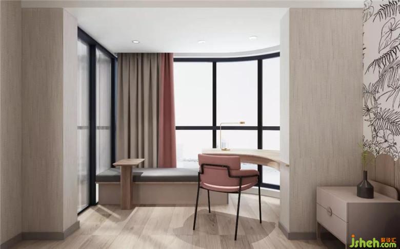 圓角陽臺去除移門,將采光極致利用,軟包長椅與弧形書桌銜接,打造學習與休閑的好地點,加上馬卡龍色系的點綴,生活變得愜意美好。裝修公司