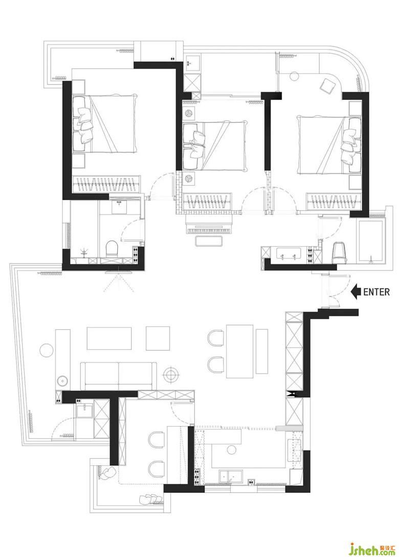 每個工作日的早晨都是一場戰(zhàn)爭,干濕分離式、雙臺盆的設計,免去了忙碌早晨對衛(wèi)生間的爭搶。