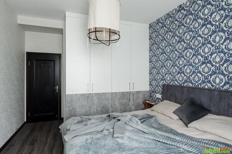 老人房的背景花墻紙延續(xù)布布貫徹的宗旨,只是選擇上還是更偏向沉穩(wěn)一點的花型,帶一點水彩的暈染感覺,靛藍色+灰+白是整個大空間色調(diào),有一種沉靜的詩意。