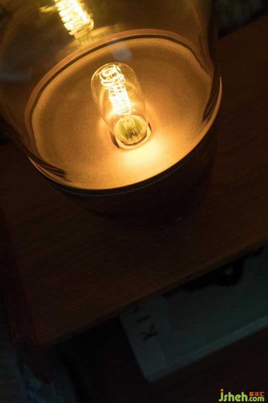 床頭燈溫馨十足,冷色壁紙與暖黃的光暈讓夜晚更謐靜與放松。