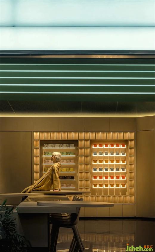 這是WILLchá的視覺(jué)品牌色,也因此被CUN將其作為主題色運(yùn)用到了空間當(dāng)中,至此便塑造了WILLchá給人的第一印象:自然且純粹。