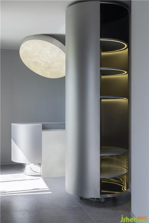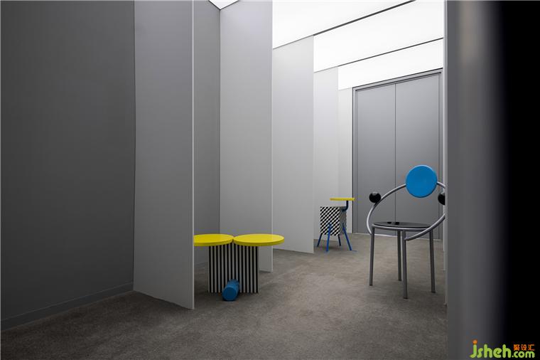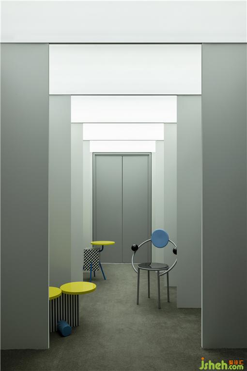 主要材料:鏡面不銹鋼、竹片/金屬板/LED、灰色水磨石、灰色乳膠漆