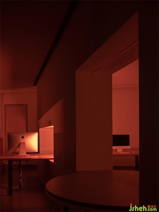如果說「誰園」是用現(xiàn)代包豪斯的廠房空間重新表達(dá)東方院落的精神性,那在辦公部分,辦公室設(shè)計(jì)則是用現(xiàn)代設(shè)計(jì)手法對(duì)東方意向進(jìn)行更具象的空間轉(zhuǎn)譯,兩者在同一建筑內(nèi)的表達(dá)構(gòu)成有趣的互文關(guān)系。