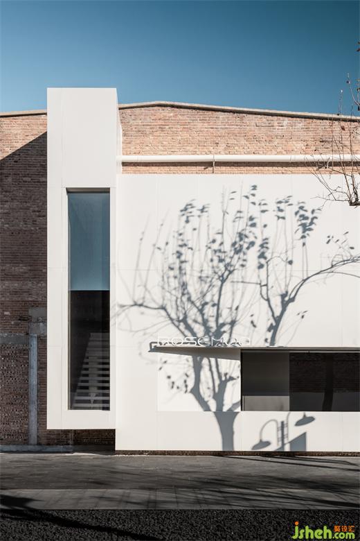 倉庫建筑原本開敞格局與優(yōu)越的挑高為創(chuàng)意類辦公空間提供了豐富的空間可能性,在留原工業(yè)遺產(chǎn)的線索之上,崔樹通過雕塑般的手法,在建筑內(nèi)外制造了的兩個(gè)體量,既實(shí)現(xiàn)了作為品牌總部的識(shí)別性外觀,同時(shí)滿足內(nèi)部不同功能的有機(jī)融合組織。