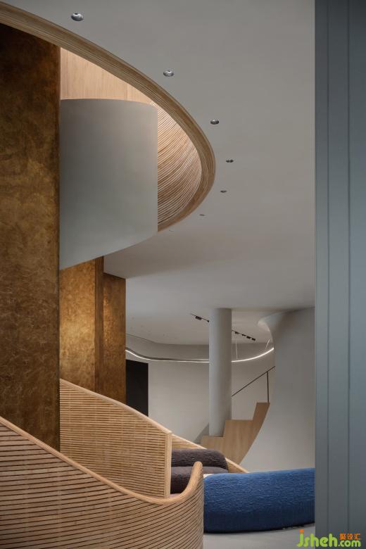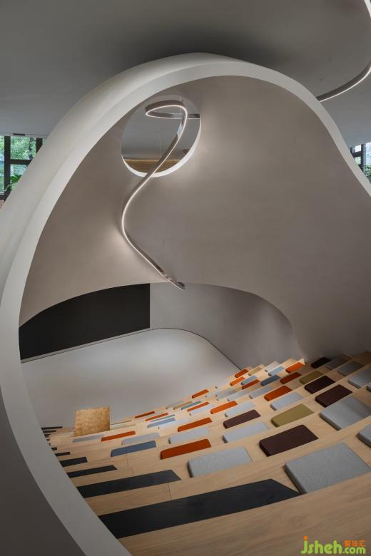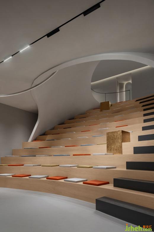 一樓入口的階梯式活動(dòng)場(chǎng)地可以容納小規(guī)模的沙龍分享和品牌發(fā)布會(huì)等活動(dòng),當(dāng)人們順著動(dòng)線往里走,豐富且多樣的社交場(chǎng)景組合分別圍繞著內(nèi)院展開。