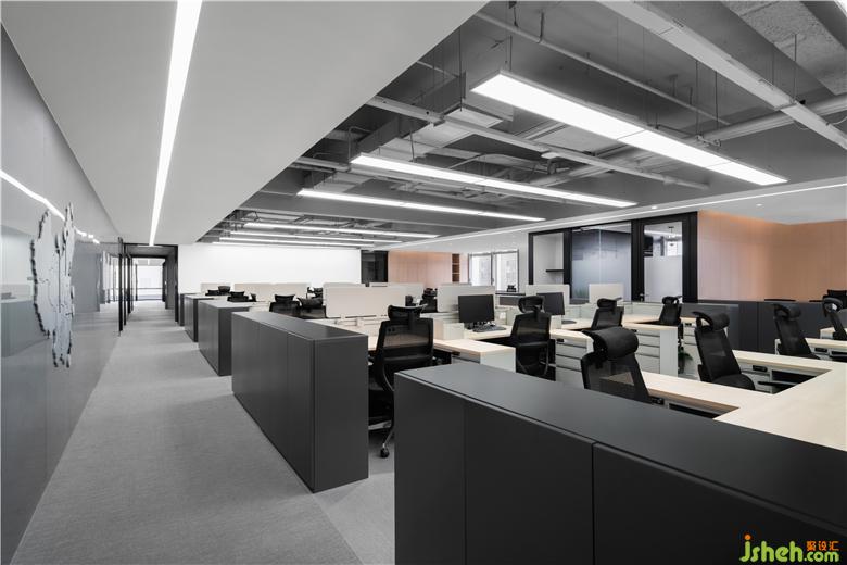 ▼開(kāi)敞辦公區(qū)部分天花保留建筑原始結(jié)構(gòu)