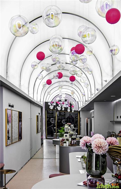 In order to highlight the floor height of the exaggerated scale, we add a full-length dome to the original structure; at the same time, a complete mirror box is designed at the end of the dome, so that the space is twice as long. Let the taller be taller and longer be longer.