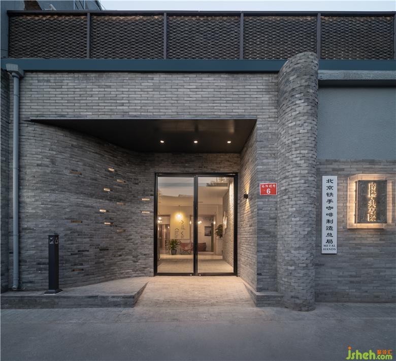 The fa?ade of the building uses grey bricks to extend the quaint temperament of the entire hutong. The main entrance uses a soft arc shape to form an entrance waiting area with a sense of depth. In order to highlight the arc of the entrance, we used a new material, glass bricks, which added a few transparent colors to the original grey bricks, which can light up the dim hutong at night.