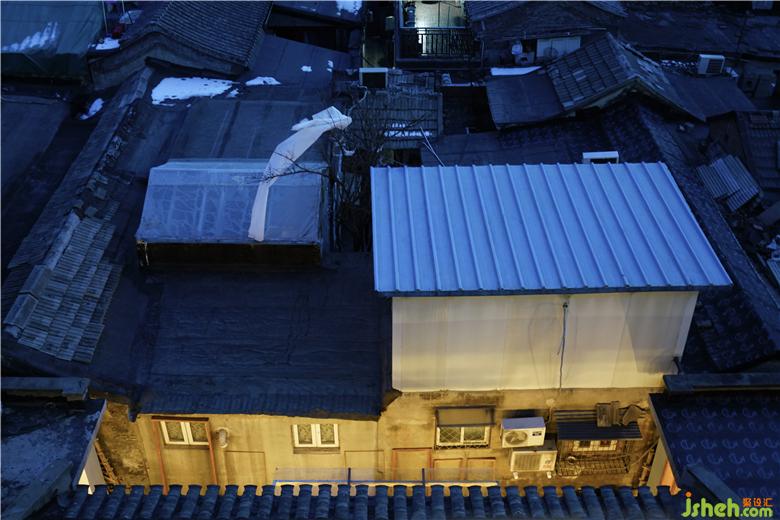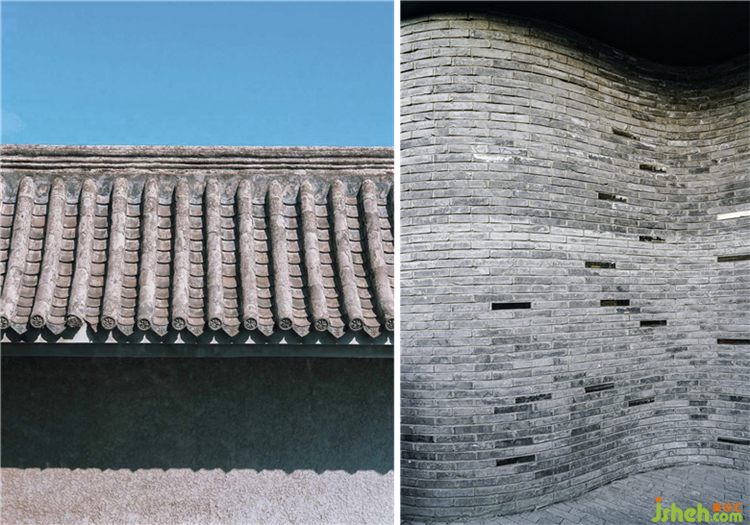 ▼立面曲面弧線延伸胡同建筑屋頂?shù)那€, The curved surface of the facade extends the curve of the roof of the hutong building