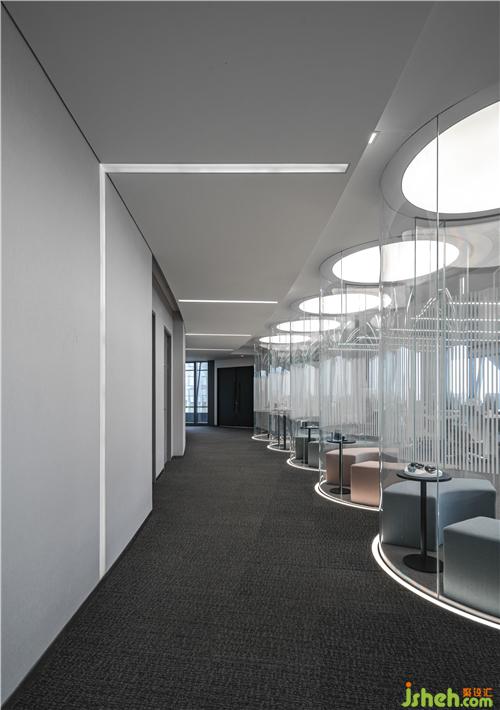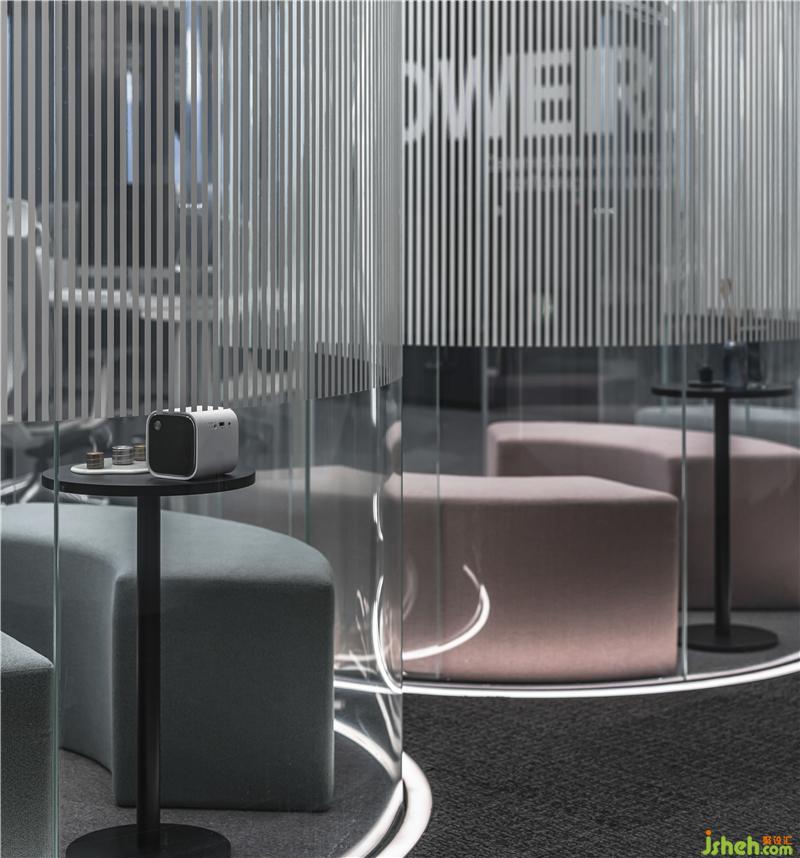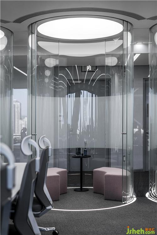 The fully transparent five-senses glass boxes make this leisure space like a beam of light floating in the space, light and interesting, blurring the space boundary, allowing the office area to interact with the corridor space, experiencing the events inside and outside the glass, and perfectly combining functionality and viewing.