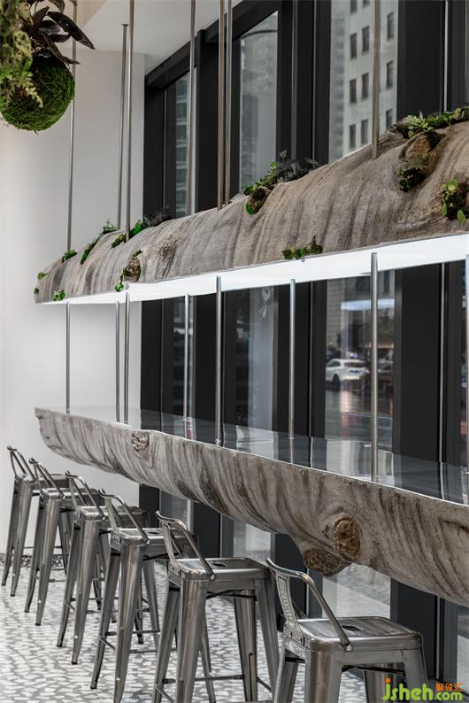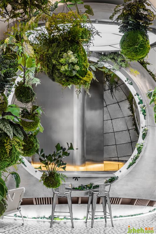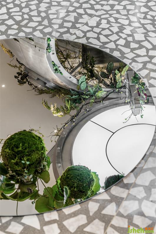 切開樹木,不是熟悉的木質(zhì)纖維,而是光滑的鏡面般金屬物質(zhì)。咖啡制造局設(shè)計樹木飄浮在空中,詭異的截面反射著這個美好卻又陌生的世界。