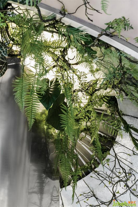 “懸浮”在半空中的長桌源自于切開的樹干,而鏡面材質(zhì)的截面完美的倒映出了窗外高樓林立的世界。舉起咖啡杯,從桌面看到外面的世界的倒影,紛紛擾擾仿佛離著萬年之遠。