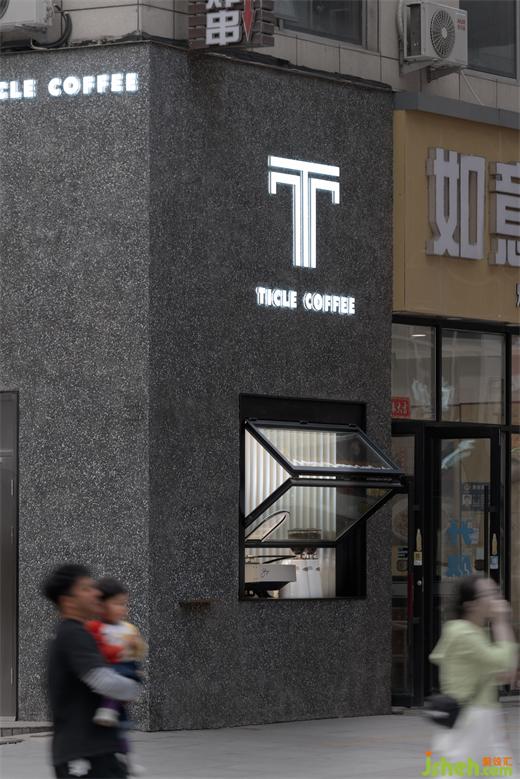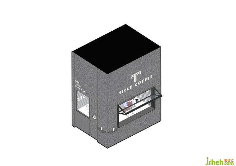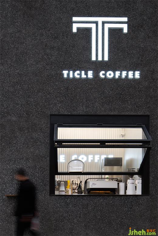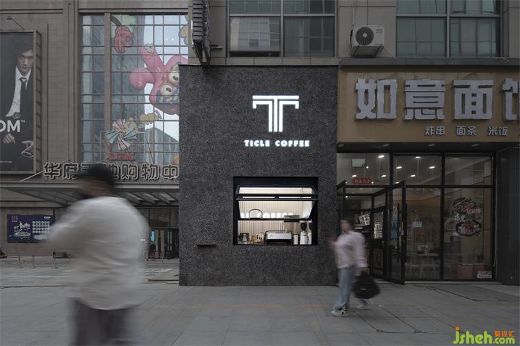 本案選址于沈陽華府天地,空間概念依舊是超現(xiàn)實幻想,整個立面設(shè)計簡潔、純粹,像一個“太空墜落”的神秘盒子插入到大廈建筑,因此Ticle Coffee作為一個完整的體塊具有很高的辨識度,同時又很好的融入建筑整體。盒子沿街的正面掏了個方形的咖啡窗口,體塊造型特點貫穿整體。