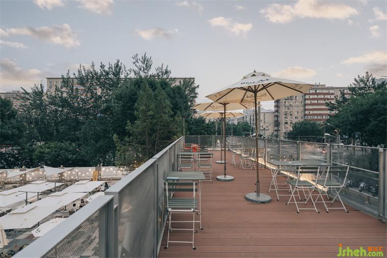 在露臺上可眺望不同的城市光景,露臺提供了一種可供不同時令季節(jié)下多樣的經營性活動空間之用。從露臺往下的大面積戶外餐飲酒吧場地,作為街道的功能補充,為街區(qū)提供共享交流的友好場所,以及聚集休閑公共平臺;作為酒吧的外部延伸,創(chuàng)造酒吧的活力。