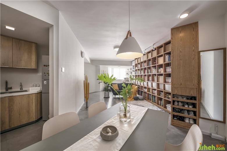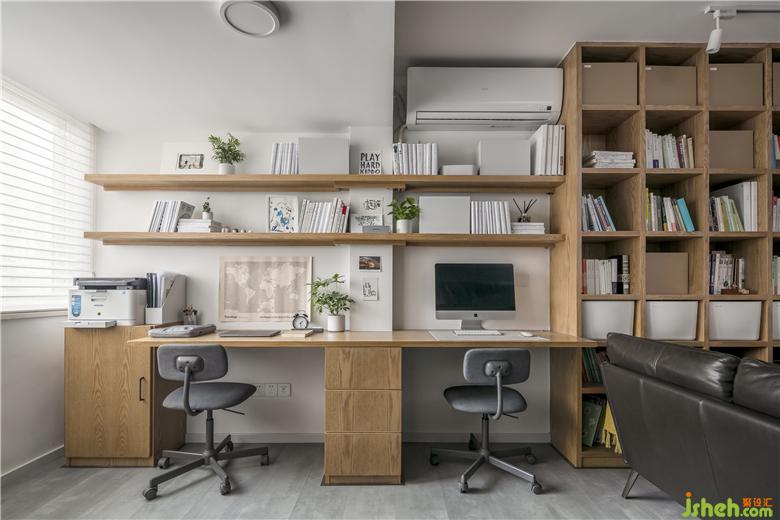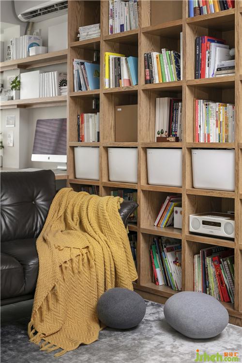 2.打開原來電視背景墻的墻面,把通道功能弱化,擴(kuò)大客廳的空間感。將原來的生活陽臺包進(jìn)客廳,改造成書房,加強(qiáng)空間的延展性。
