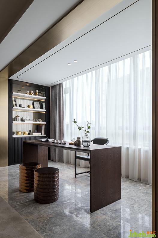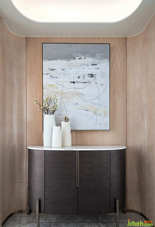 本案由深圳戴勇設計操刀,以強調(diào)豎向線、弱化橫向線的形式,將陽角改為圓角,構(gòu)建流暢的動線型;若有似無的邊界圍合著進退得宜的空間尺度。全屋木飾面采用加拿大楓影木,質(zhì)感細膩溫潤,做為起承轉(zhuǎn)合的背景色柔和而不張揚,大地色系作為主調(diào)將居室格調(diào)渲染得更為溫暖雅致。
