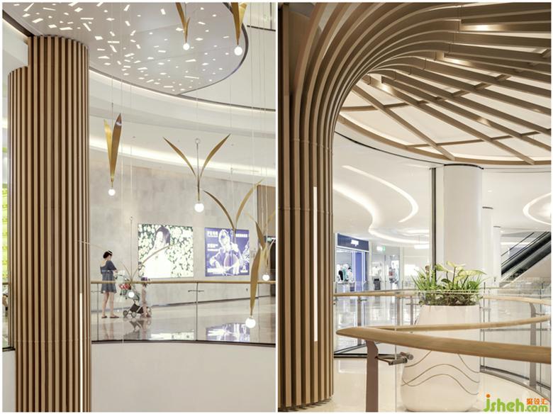 設(shè)計(jì)師根據(jù)次中庭的建筑結(jié)構(gòu)特點(diǎn),結(jié)合室外風(fēng)格元素,在室內(nèi)進(jìn)行了有序的延伸,與建筑入口處的立柱造型和諧呼應(yīng),并通過不同材質(zhì)、造型,弱化突兀的視覺沖突,構(gòu)畫屬于次中庭作為場景節(jié)點(diǎn)的表達(dá),讓這一場關(guān)于海岸的旅程有了更富浪漫想象的情景感受。