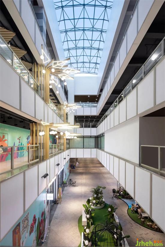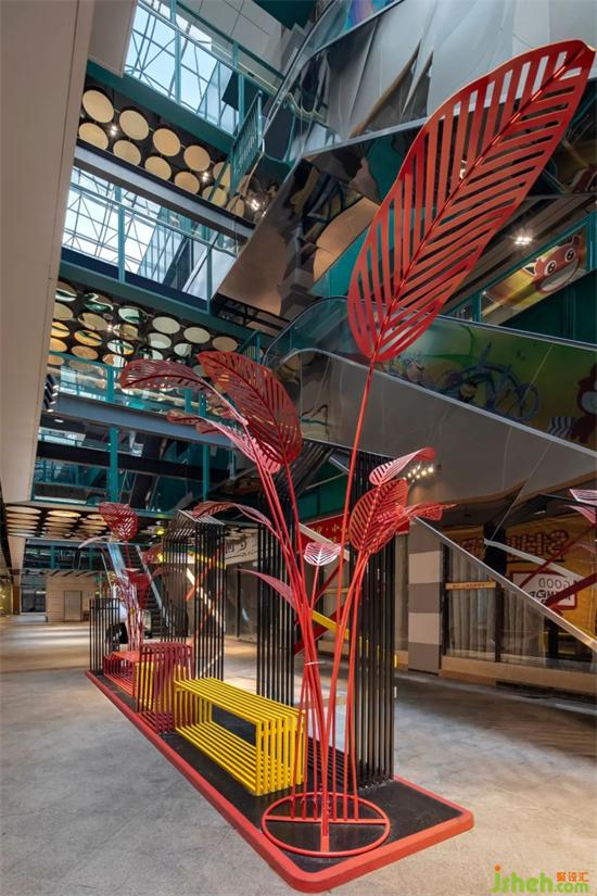 設(shè)計(jì)師應(yīng)該在內(nèi)外尺度中與商業(yè)和公共區(qū)域的關(guān)懷找到平衡點(diǎn)。商場設(shè)計(jì)公園街以色彩明麗造型極簡為主,加以綠植點(diǎn)綴,讓整個(gè)空間氛圍變得清新和靈動(dòng)。