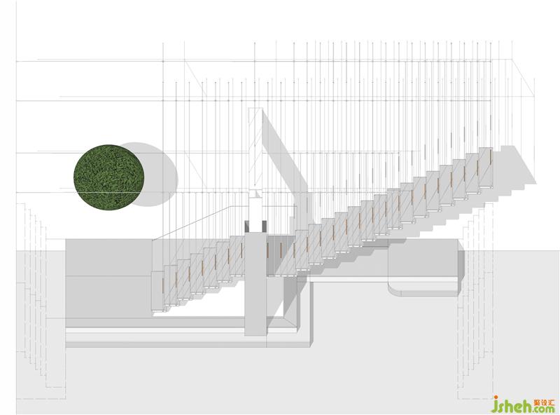 樓梯頂部與側(cè)面綴滿ECCO的金屬蝕刻logo,將品牌印記幻化為一種藝術(shù)符號(hào),低調(diào)而又極富存在感地交織在空間之中。