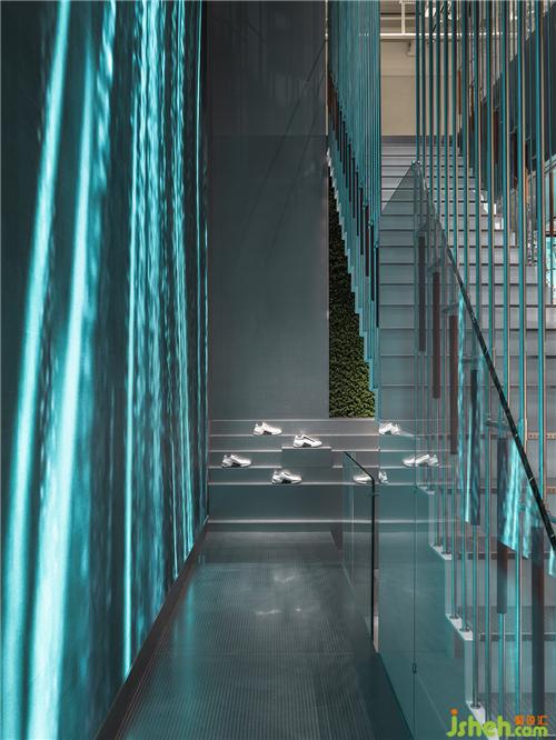 綠植裝置讓這個(gè)場(chǎng)景感受更加環(huán)保,ecco全球旗艦店并非純粹的營(yíng)銷空間,而是提供給城市一個(gè)更開(kāi)放的「客廳」,成為令體驗(yàn)者安全舒適的城市空間。