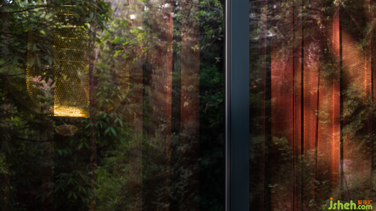吊燈的造型靈感來(lái)源于自然,采用傳統(tǒng)竹藝編織技法并運(yùn)用到設(shè)計(jì)中去,輕盈優(yōu)雅?;疱伒暝O(shè)計(jì)向外舒展的層層線盤,與之前向內(nèi)收斂的黃銅絲籠吊燈成為張弛的兩面,彼此在空間互相對(duì)話。