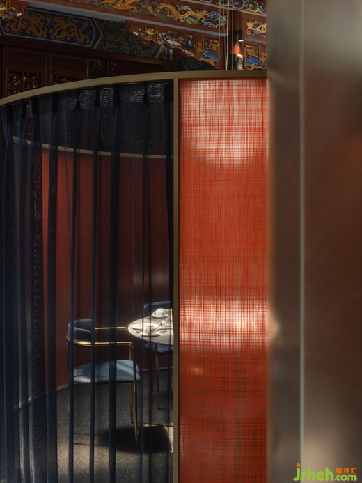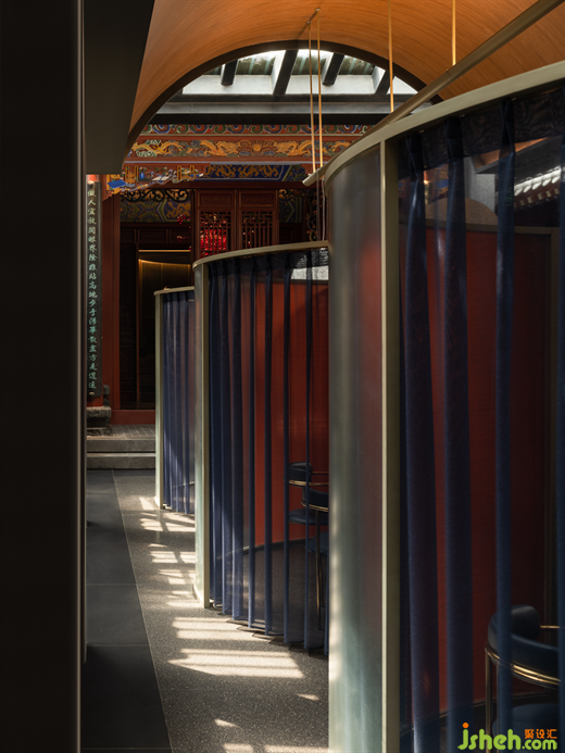 半遮半掩間,撥開一層層的帳紗,就像撥開歷史重重的神秘面紗,撞見的卻同是清歌歡語,塵世浮生。火鍋店設(shè)計(jì)師深諳隱逸之趣味,在這里歷史與現(xiàn)代在此交匯,相映成趣。