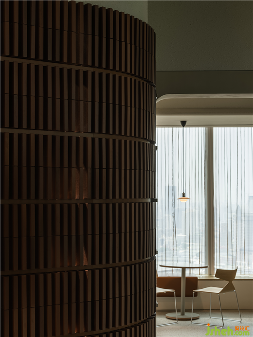 在上海的街道上散步時,人們不禁會注意到裝飾城市老建筑的小拱門??偛哭k公室裝修設(shè)計師從這個元素中汲取靈感,并將其融入到迎接訪客的第一個空間——電梯大廳中?;⌒尉€條引導(dǎo)著運動流動,創(chuàng)造了一個三維的視覺效果,其交錯的圖案相互銜接。