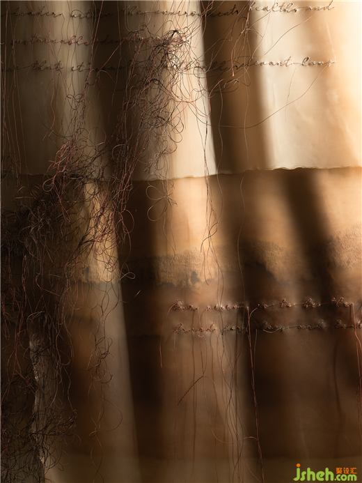 幾個世紀以來,蘇繡以其千年歷史在東方美學哲學中被視為一個重要元素。紅山設計將傳統(tǒng)的刺繡技術與當代藝術和文化無縫融合,創(chuàng)造出散發(fā)著時間與深度溫暖氣息的藝術裝置。這個獨特的裝置承載著時間的痕跡,是文化交流的重要媒介。設計師們深入探索抽象和現實、簡單和復雜的深度,讓裝置充滿無限情感共鳴,創(chuàng)造出一個不僅有著美學優(yōu)美,而且能夠引起觀者深刻情感共鳴的環(huán)境。