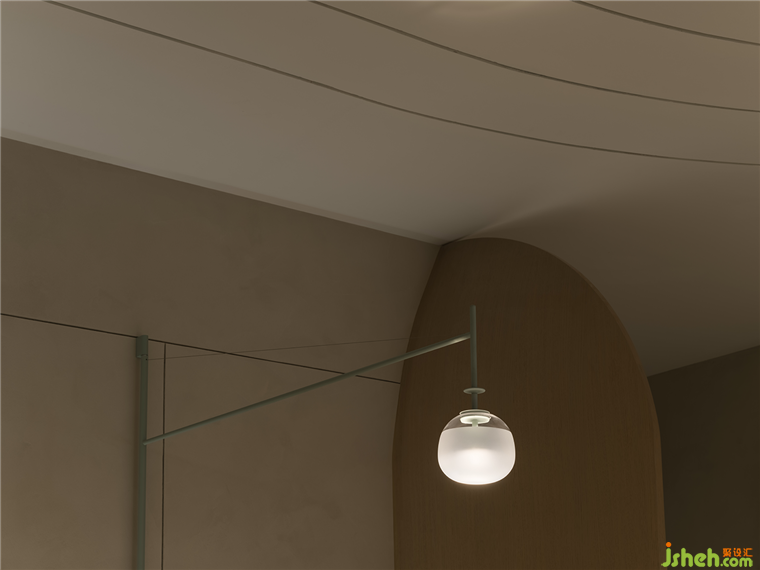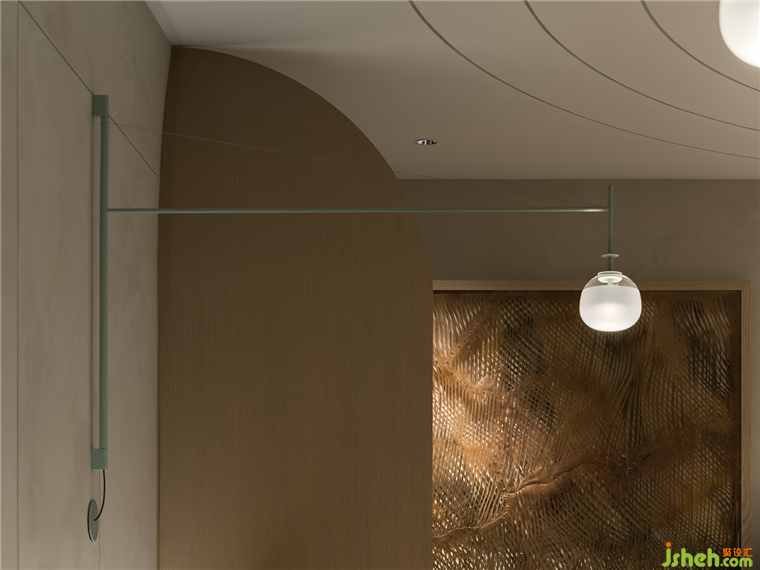 非線性的天花板設(shè)計(jì)提供了獨(dú)特的視覺體驗(yàn),采用東方美學(xué)強(qiáng)調(diào)了留白,優(yōu)美的曲線流暢地鋪開,創(chuàng)造出一個(gè)流動而平衡的空間,展現(xiàn)生命和運(yùn)動之美。
