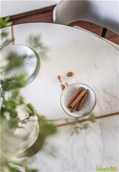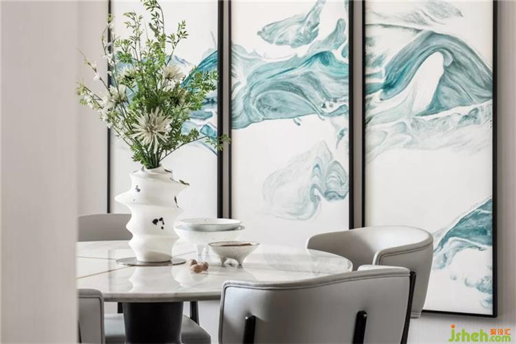 不同的功能空間,展現(xiàn)的形式和意蘊(yùn)皆不相同。項(xiàng)目靠近老山國家森林公園,森林的秀美清新、大地的厚重深沉和流水的靈動(dòng)活潑都予以設(shè)計(jì)師靈感。在亮堂的餐廳中,冰川綠和大理石白結(jié)合,重現(xiàn)大自然的風(fēng)光。室內(nèi)設(shè)計(jì)師