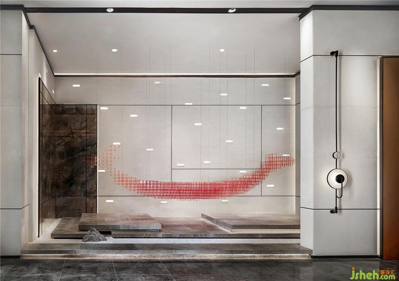 設(shè)計(jì)師撮要建構(gòu)出一個(gè)時(shí)空聚點(diǎn),與空間連成一片。接待前臺(tái)區(qū)以簡(jiǎn)潔利落引入,紅色的裝置以舟之形,顯競(jìng)之景,以形、意、境展現(xiàn)“龍舟競(jìng)渡”對(duì)于順德傳統(tǒng)文化不可或缺的意義深圳室內(nèi)裝修設(shè)計(jì)。