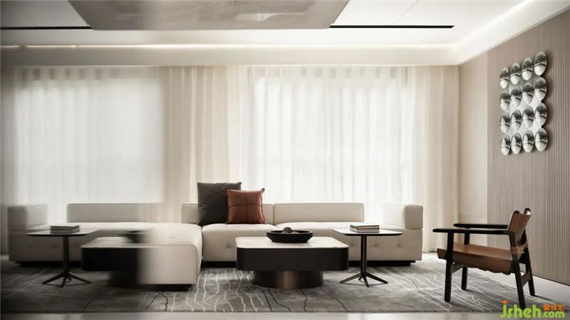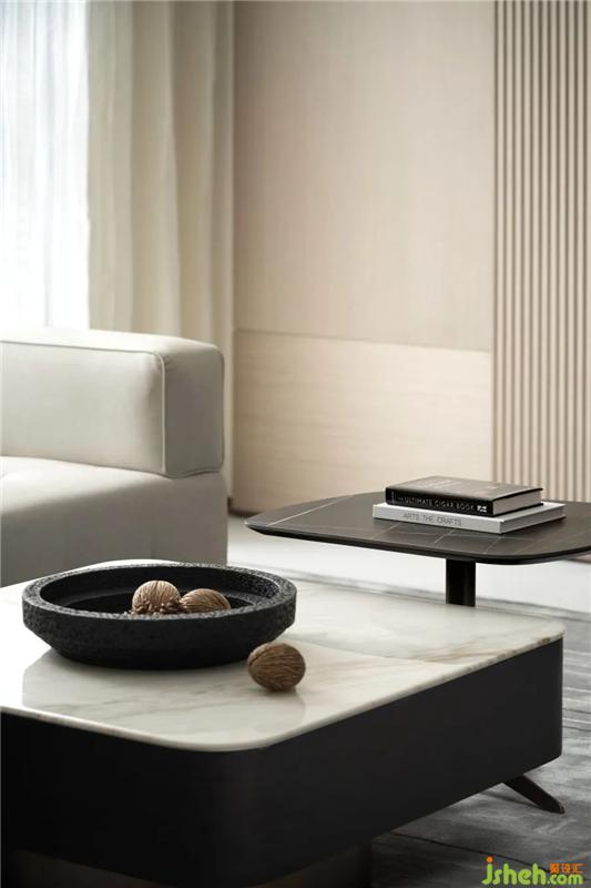 線條的紋理增加靈動感,穩(wěn)重的黑色調(diào)配以白色大理石的點綴,仿佛多變的山丘徜徉于自然之境深圳樣板間設計。