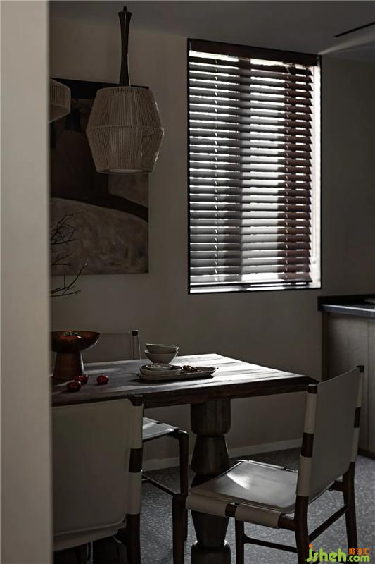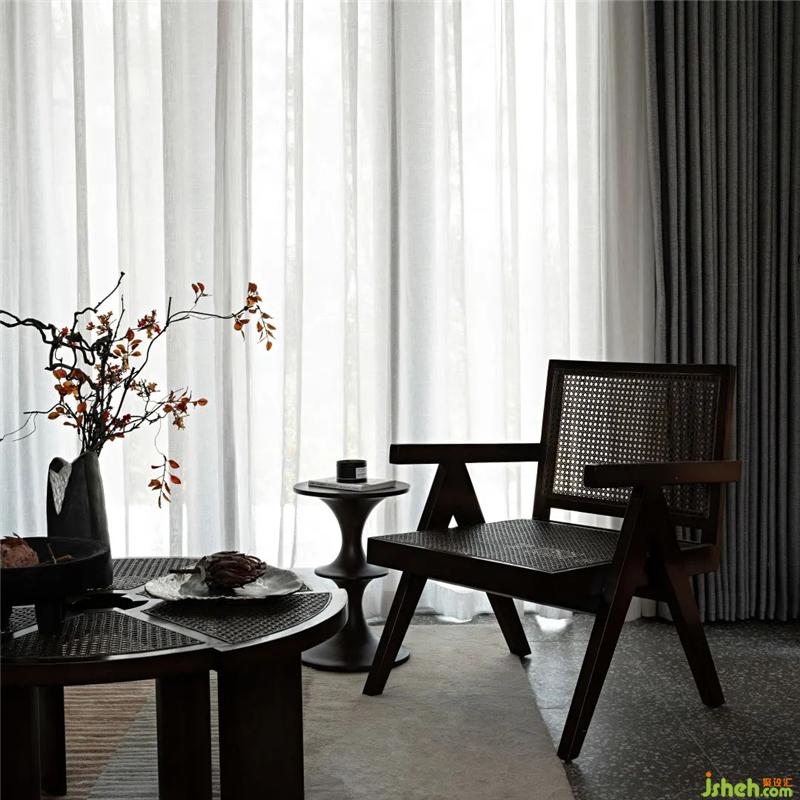 客廳摒棄浮華的設(shè)計(jì),衍脈自深厚邈遠(yuǎn)的傳統(tǒng)文化,從家具的形制、流線、色澤,到墨枝斜逸,均鐫刻著東方詩(shī)性的肌理,流露出自信大方的悠悠風(fēng)骨。