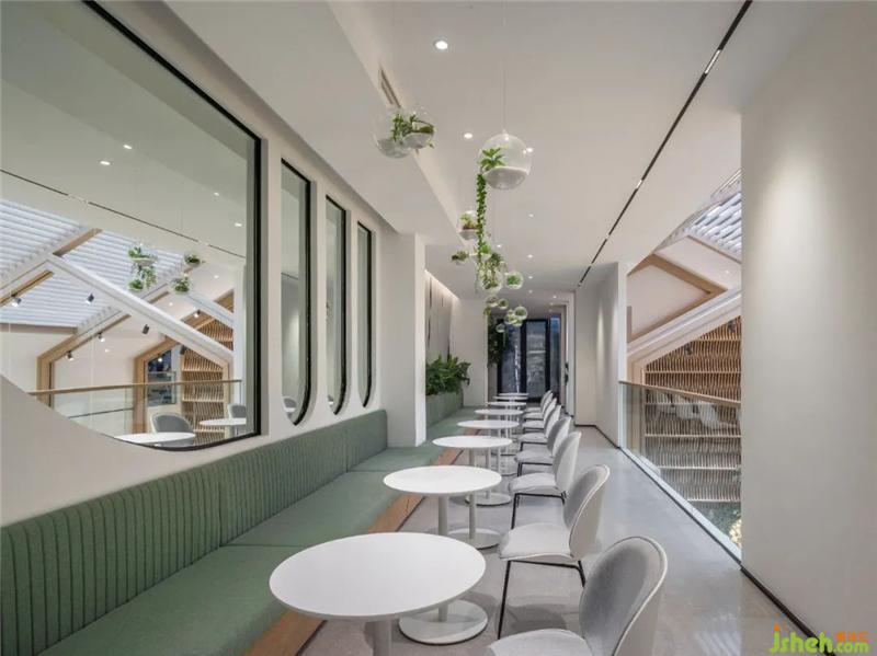 綠植裝置與墻體生長(zhǎng)在一起,波紋玻璃粼粼閃光,在平滑中過(guò)渡出的座椅線條與弧度,成為空間藝術(shù)氣質(zhì)的重要構(gòu)成元素,與純白的基調(diào)相融相深圳營(yíng)銷中心設(shè)計(jì)協(xié)調(diào)。