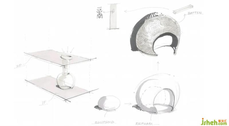 內(nèi)部的自由片墻與“巢”物理界定,從而產(chǎn)生了一種模糊的空間深度,空間又不完全被區(qū)隔。