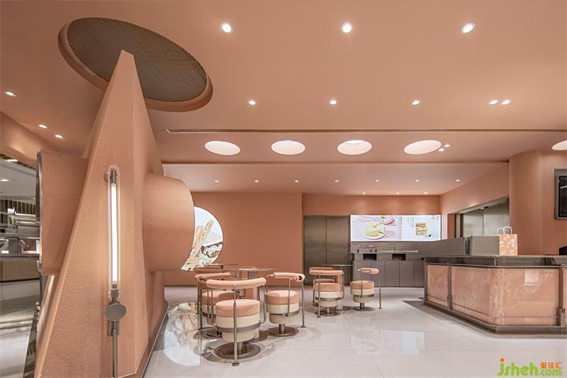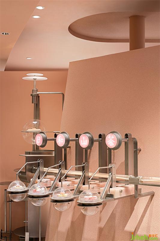 Constructs the "soft" nature of space by using low saturation pink skin texture paint. The pink jade combining the texture properties of stainless steel provide a "diversity" visual effect, at the same time, the design maximized the space function and depth, also it can update the consumers understanding to the brand.