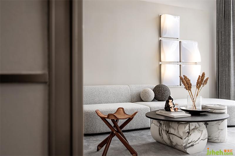 Through the transformation of modern decoration, the cold and sumptuous metal responded to the space thickness and texture, facing to the glass curtain wall, one side is slow, another side is mellow, showing a harmonious state of freedom.