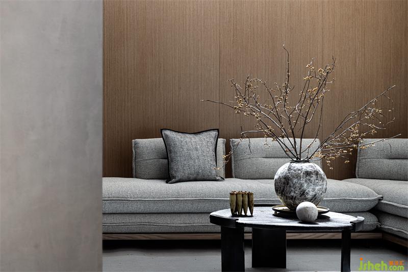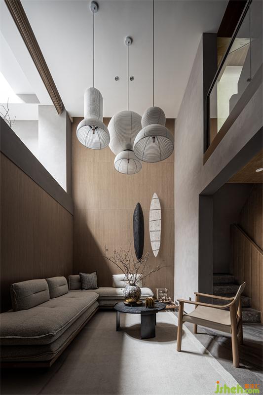 行至負一層,來到主人家的會客區(qū)域。業(yè)主在這可以招待朋友,相談甚歡,亦可在此處愉悅自己的生活,享受自己的獨處空間。樣板房設(shè)計師賦予空間不同功能的可能性,避免單一功能空間的重合浪費,也是現(xiàn)代精神的提煉與表達,同時體現(xiàn)了主人家的優(yōu)雅、愜意的生活態(tài)度。