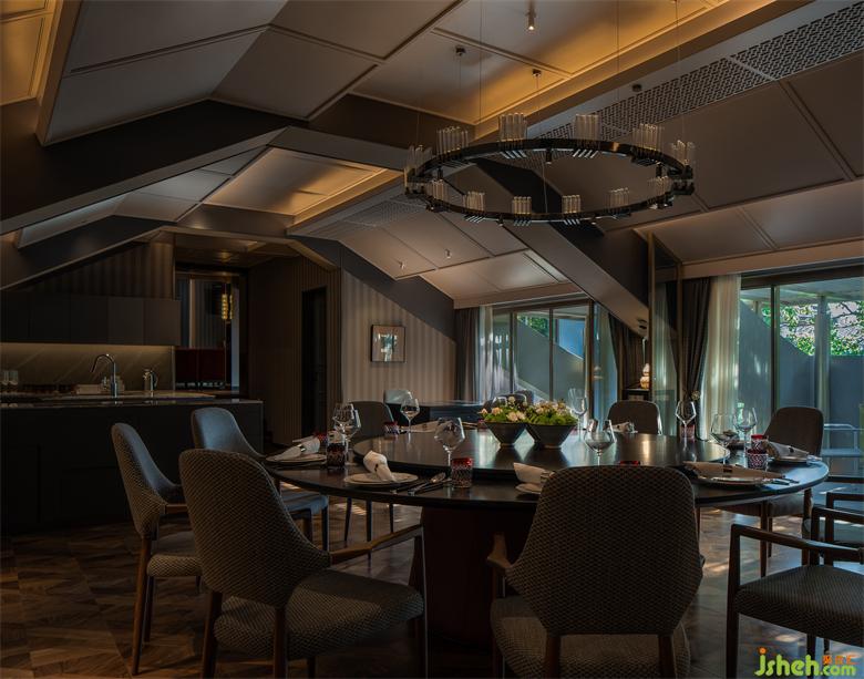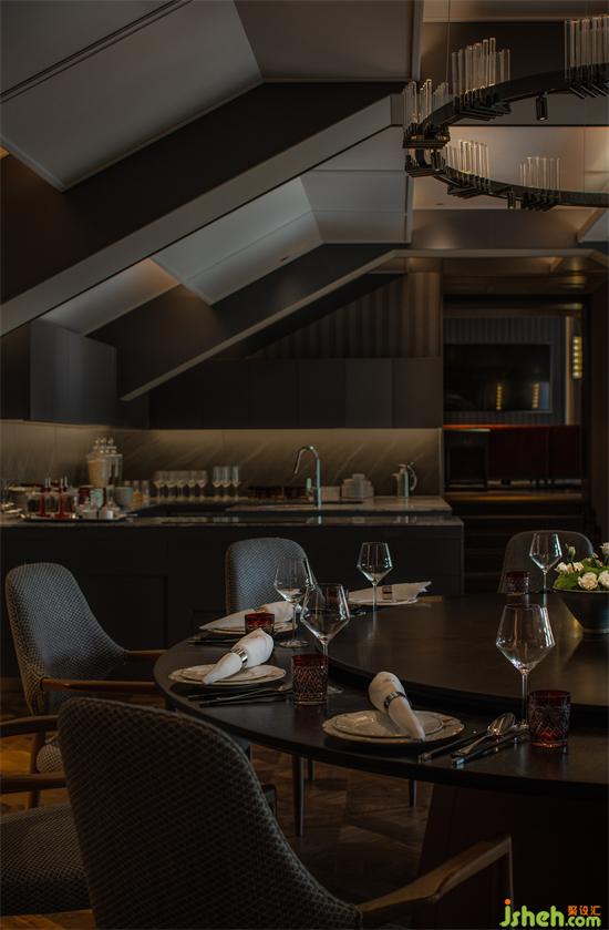 餐廳設計以重灰色為主基調的包廂內含有茶區(qū)和沙發(fā)區(qū),在較小的空間仍將功能發(fā)揮到最大,平添房間的“主人氣”,以及一種“大院包小院”的深遠。