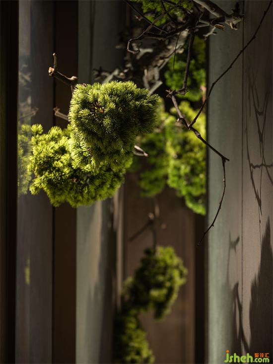 走廊處狹長形的縫隙空間被景觀占據(jù),食客漫步時(shí),落座包廂時(shí),可窺山石松翠,龍吟九品餐廳設(shè)計(jì)極少面積的景觀滿足多個(gè)包廂的視野需求,移步換景,鬧處尋幽。