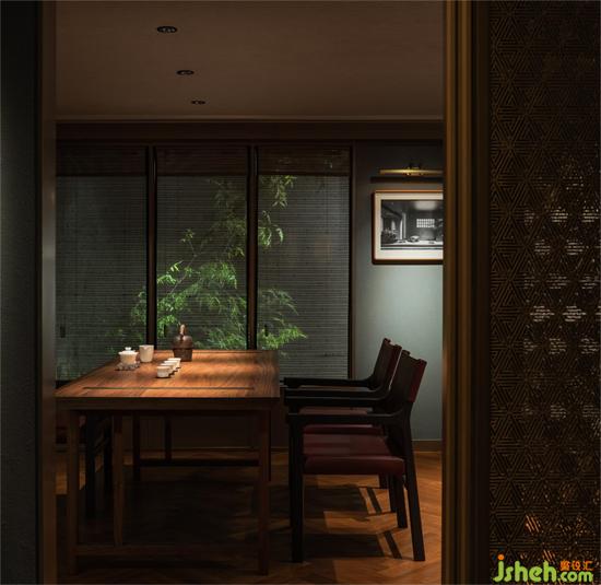 龍吟九品餐廳設(shè)計(jì)竹旁茶軒,頗具古意,與誰同坐,焚香品茗,酌酒對(duì)弈,亦是一件雅事。
