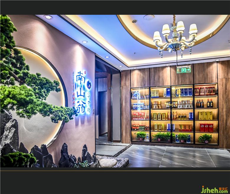 大廳吊燈優(yōu)雅而復(fù)古,華麗而沉靜。墻上懸著“梅蘭竹菊”花中四君子,潘天壽先生曾云:“蓋梅蘭竹菊等,為植物中清品,不可假丹鉛以求形似,須以文人之靈趣、學(xué)養(yǎng)、品格注之筆端,隨意寫出,以表作者高尚純潔之感情思想,一如《三百篇》之草木鳥獸,《離騷》之美人芳草者然。故世稱為四君子?!睂⒛仙轿痰钠犯窬耋w現(xiàn)得淋漓盡致,整體感覺動(dòng)中有靜,靜中有動(dòng)。