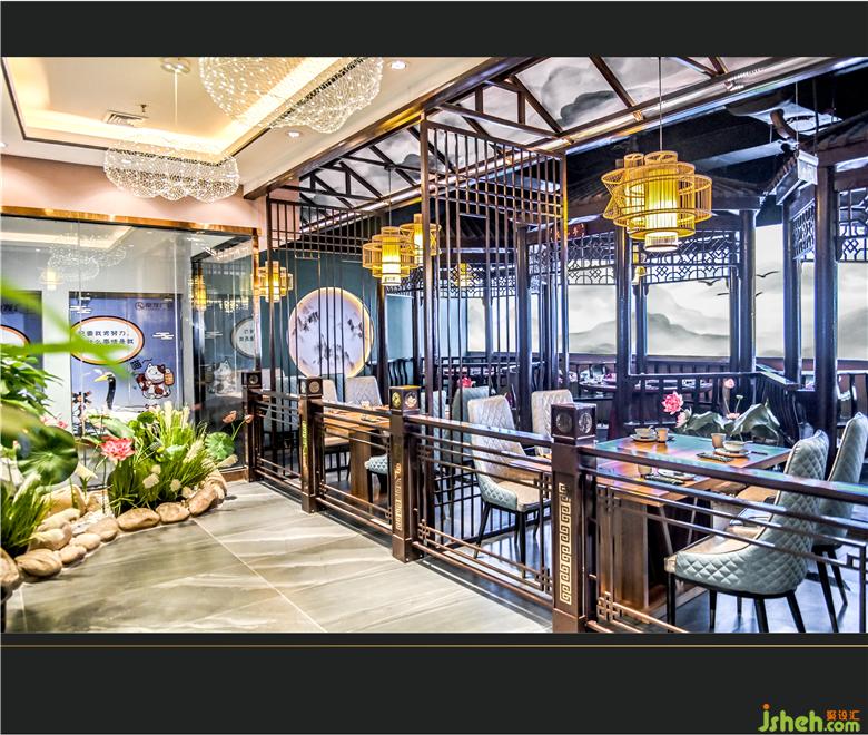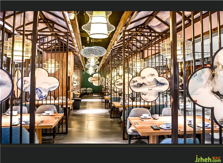 東方審美的高級(jí)感在隔斷上大有講究,雅間用水墨丹青映襯的屏風(fēng)隔開,既將空間區(qū)域劃分開來(lái),又保證了空間的視覺寬敞感,輕薄而不占地面面積。整體上儒雅而嫻靜,含蓄而深美,一種悠然自得蕩然心間。餐廳設(shè)計(jì)